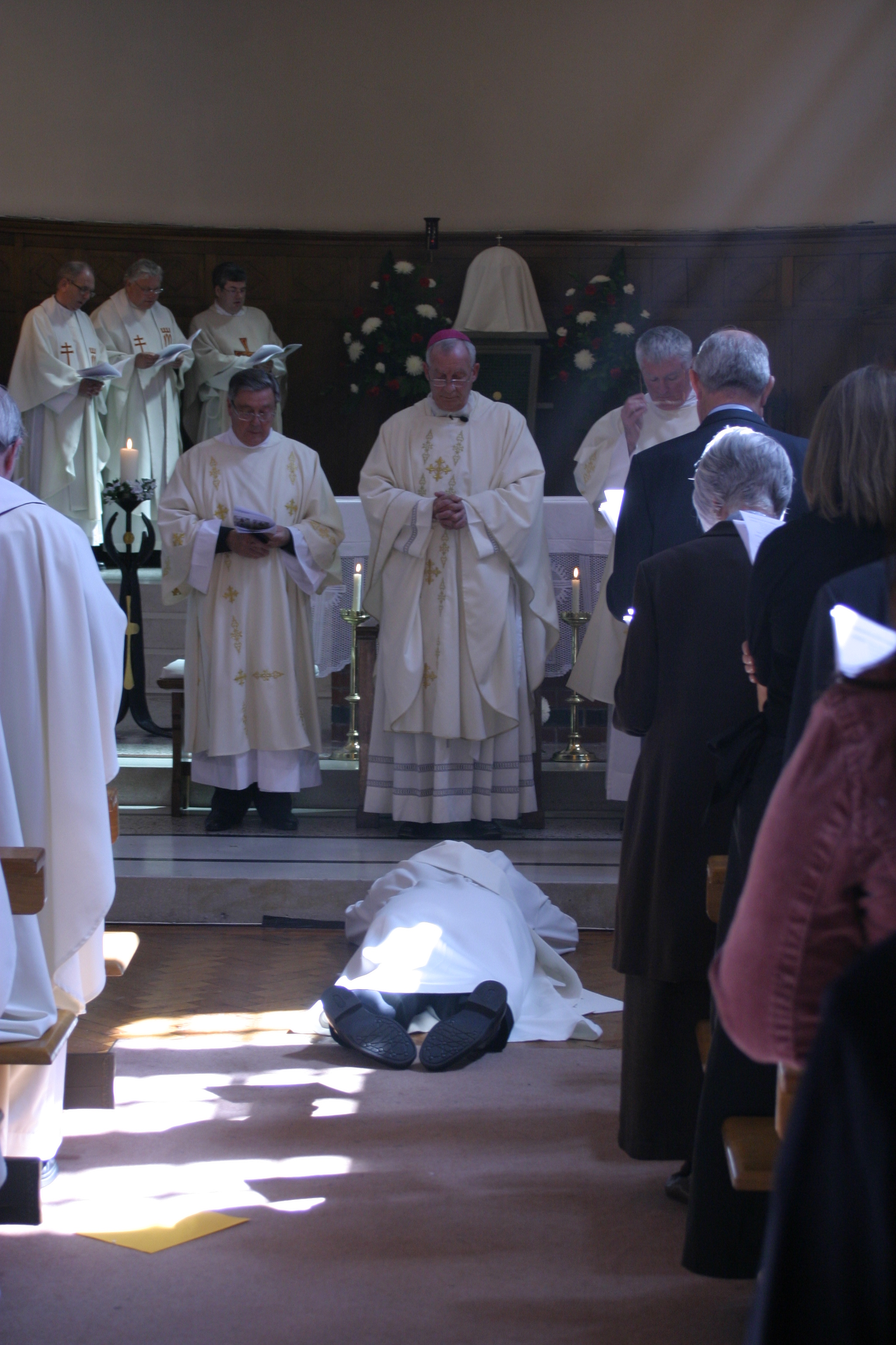 Deacon Gareth prostrates himself while the congregation sing the Litany of Saints |